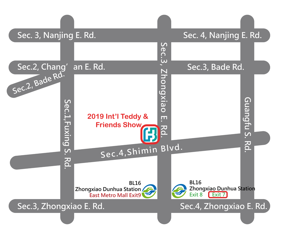 Blue Line “BL16 Zhongxiao Dunhua Station” Exit 7(If you have big luggage, you might take this exit with escalators.) Go straight to Dunhua South Rd. and turn right by walking around 8 min. - Taipei Metro Route