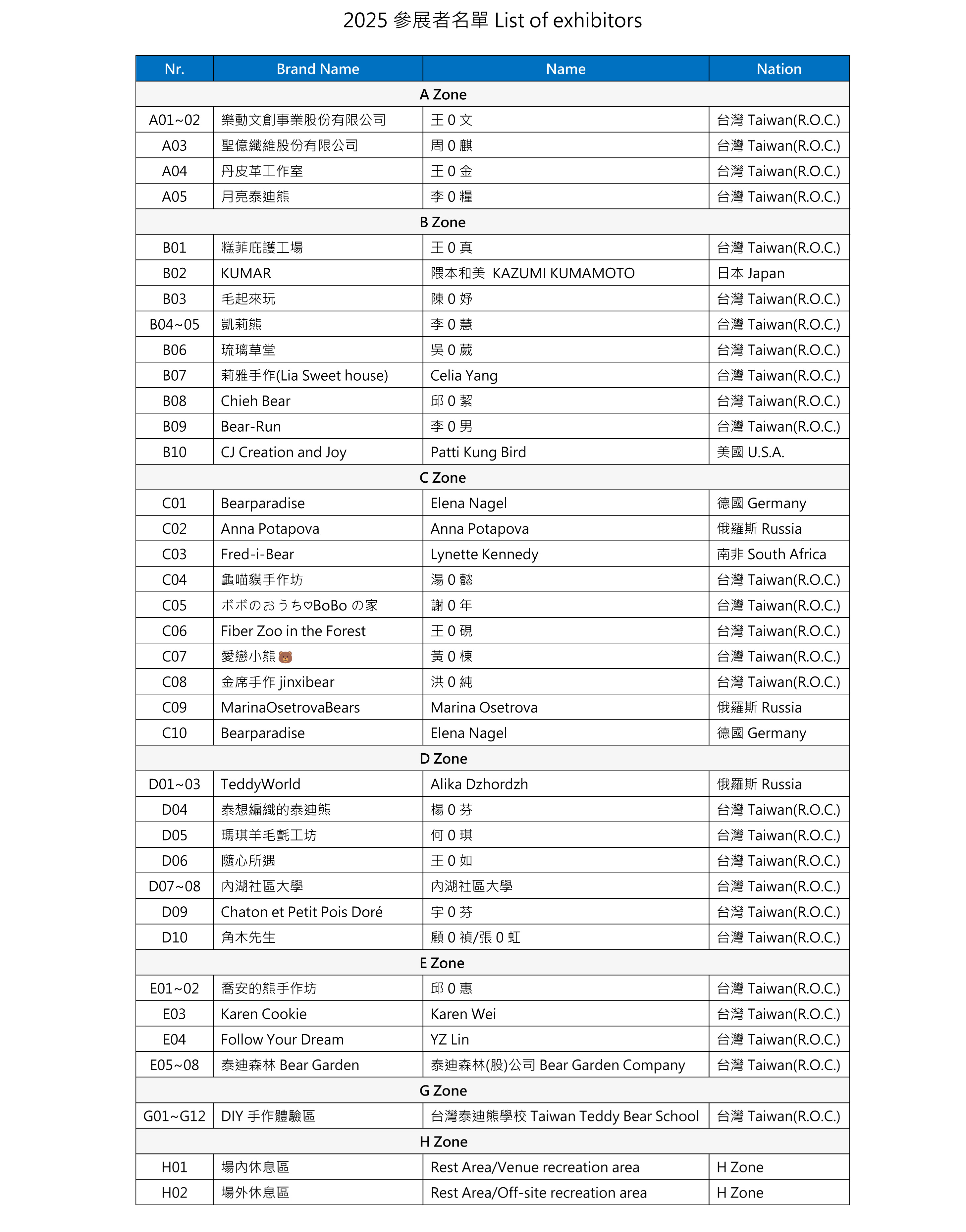 Taiwan Teddy Bear Association, will continue with its promoting and development of offering hand sewn workshops. International artists will be invited to teach and share their knowledge of bear/animal construction.